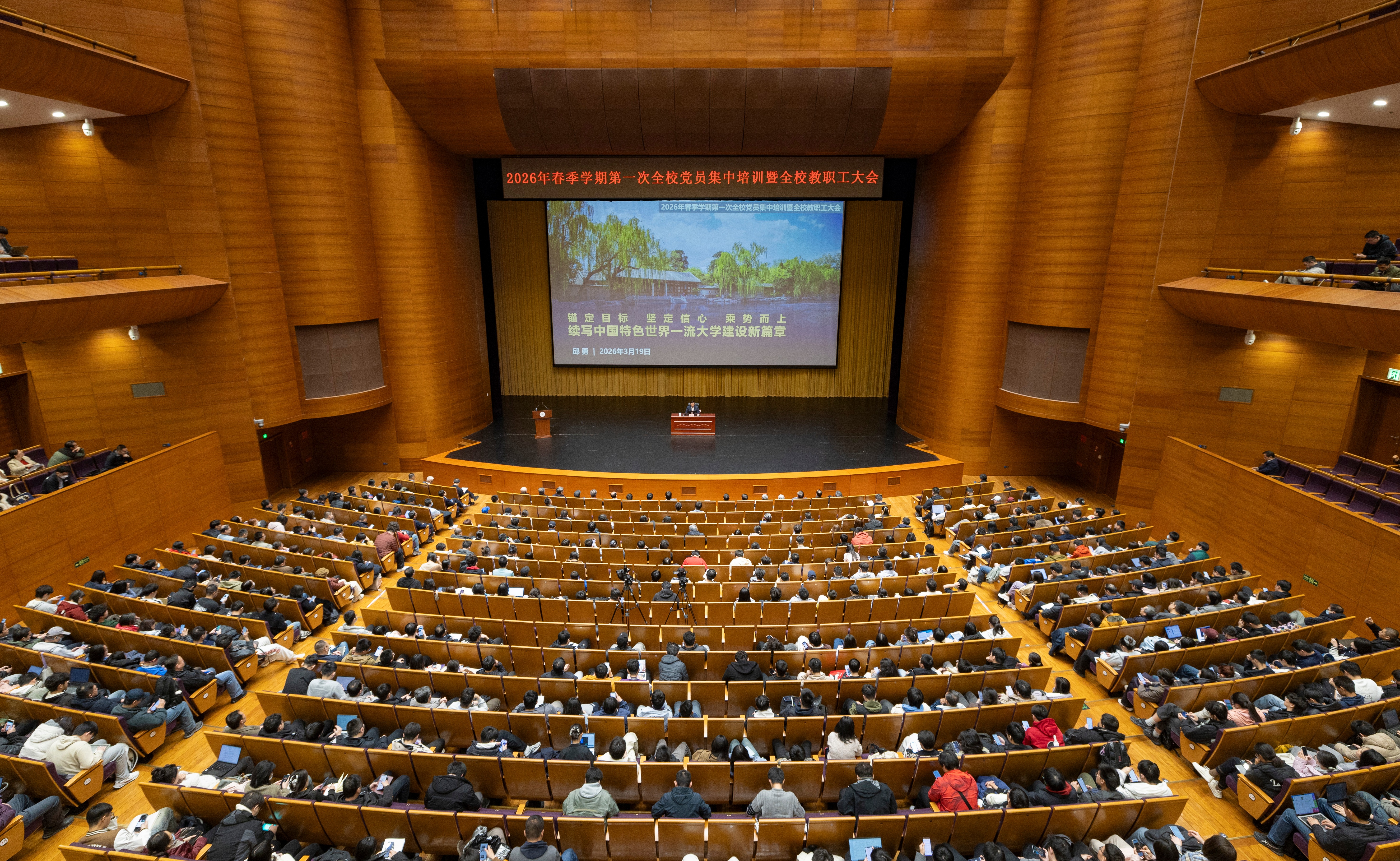 3月19日下午,清華大學舉行2026年春季學期第一次全校黨員集中培訓暨全校教職工大會,傳達學習習近平總書記在全國兩會期間的重要講話和全國兩會精神,介紹“十五五”時期學校建設發(fā)展的主要目標任務,通報部署新一年度重點工作。校黨委書記邱勇,校黨委副書記、校長李路明出席并作部署,校黨委常務副書記向波濤主持會議。